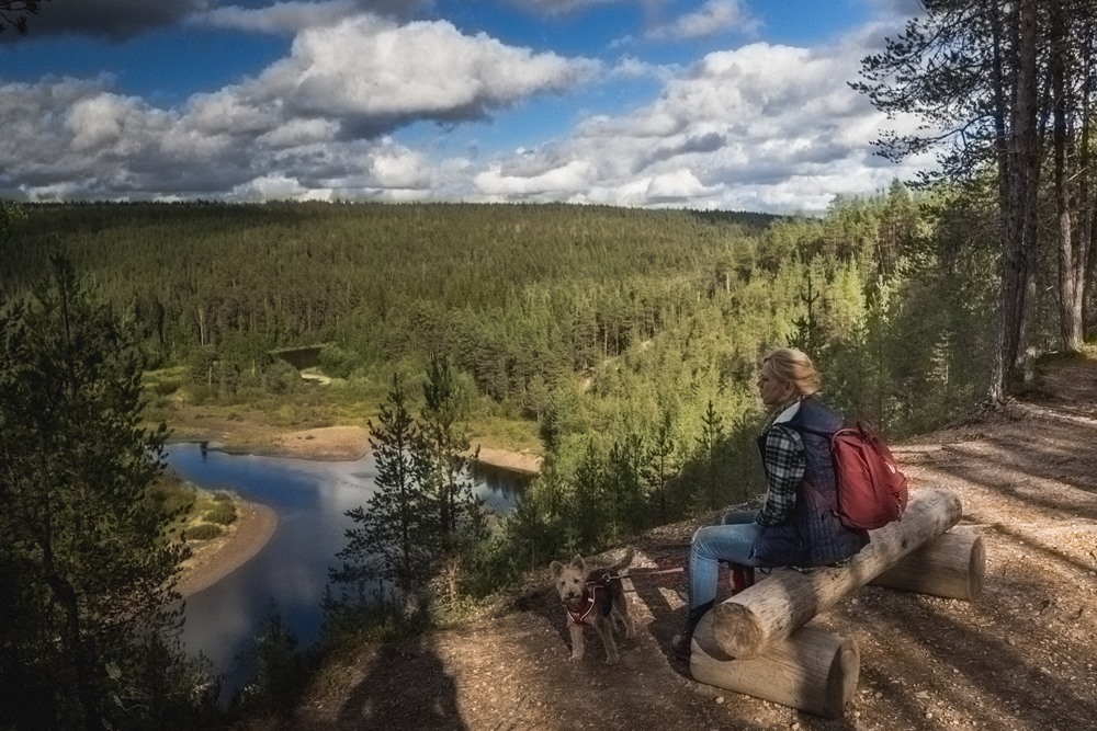 I tak, mimo, że w Parku Narodowym Oulanka można na szlaku spotkać niedźwiedzie i tak możesz wędrować tu z psem (zawsze na smyczy).