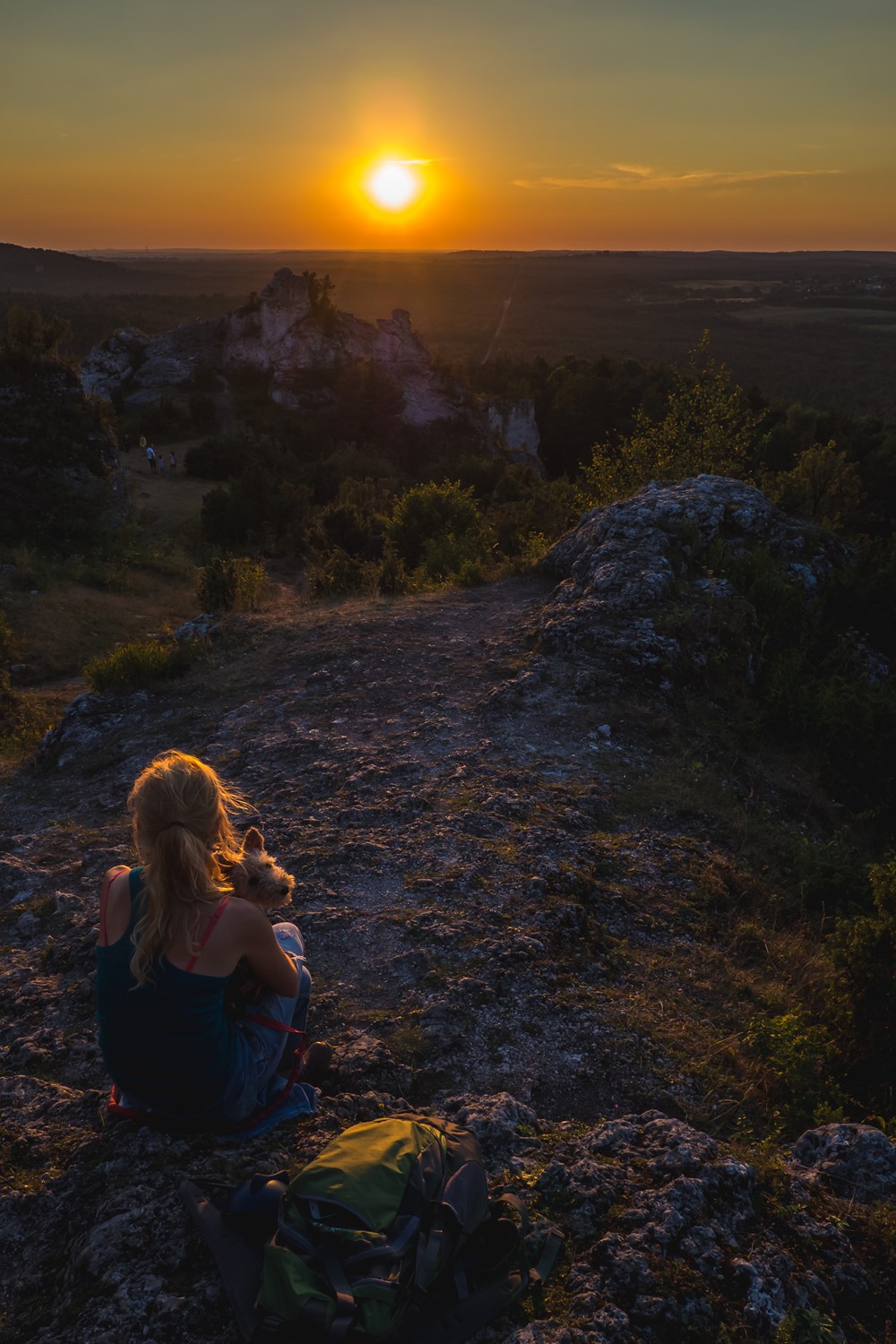 Góra Zborów (nazywana również Górą Berkową) i pobliskie pasmo Kołaczyk objęte są rezerwatem przyrody nieożywionej, do którego możesz (hell yeah!!!) wejść z psem na smyczy. Z resztą z kotem również! Regulamin nie pozostawia w tej kwestii żadnych niedomówień. Na szczyt góry (462 m) wchodzi się czarnym szlakiem (easy as pie), który prowadzi najpierw lasem, a później wije się przez malowniczy skalny labirynt. Widoki z góry epickie. Szczególnie podczas zachodu słońca. Magia.